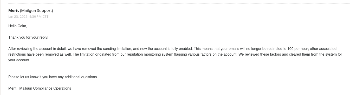 Basically, sending bulk email is proving trickier than I originally thought. But I think I have achieved a minor success below.